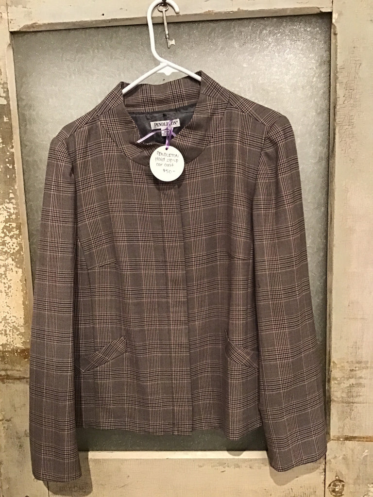 Vintage thrift second-hand designer clothing includes; a Gap jacket, overall, and vest, Michael Kors leather jacket, Vintage Lauren Ralph Lauren blazers, Zara blazer and tunic, and more.