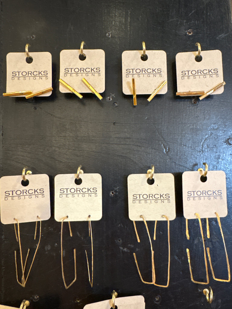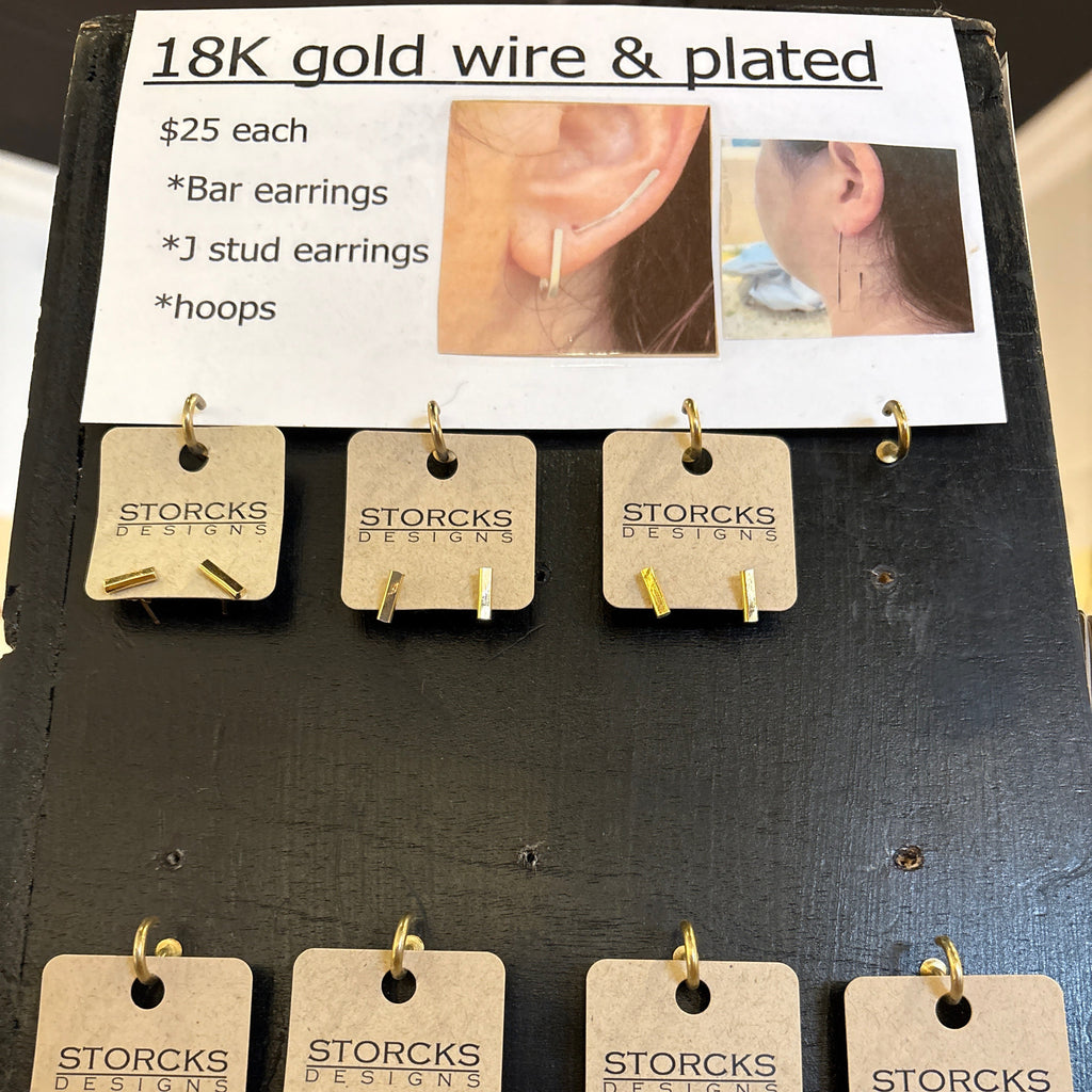 18k gold and wire plated bar, j stud, and hoop earrings. Great addition to any outfit day or night.